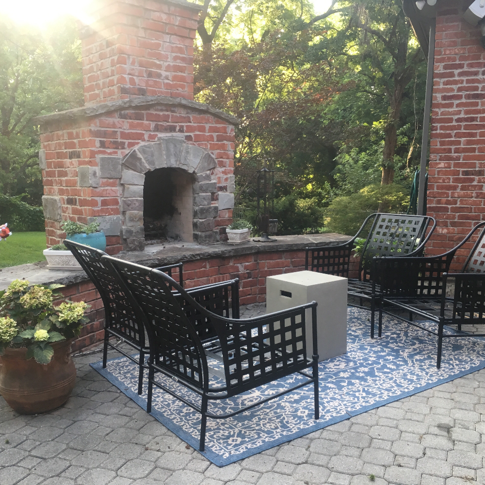 A DIY grill station with pavers creates a clean, organized outdoor cooking area.