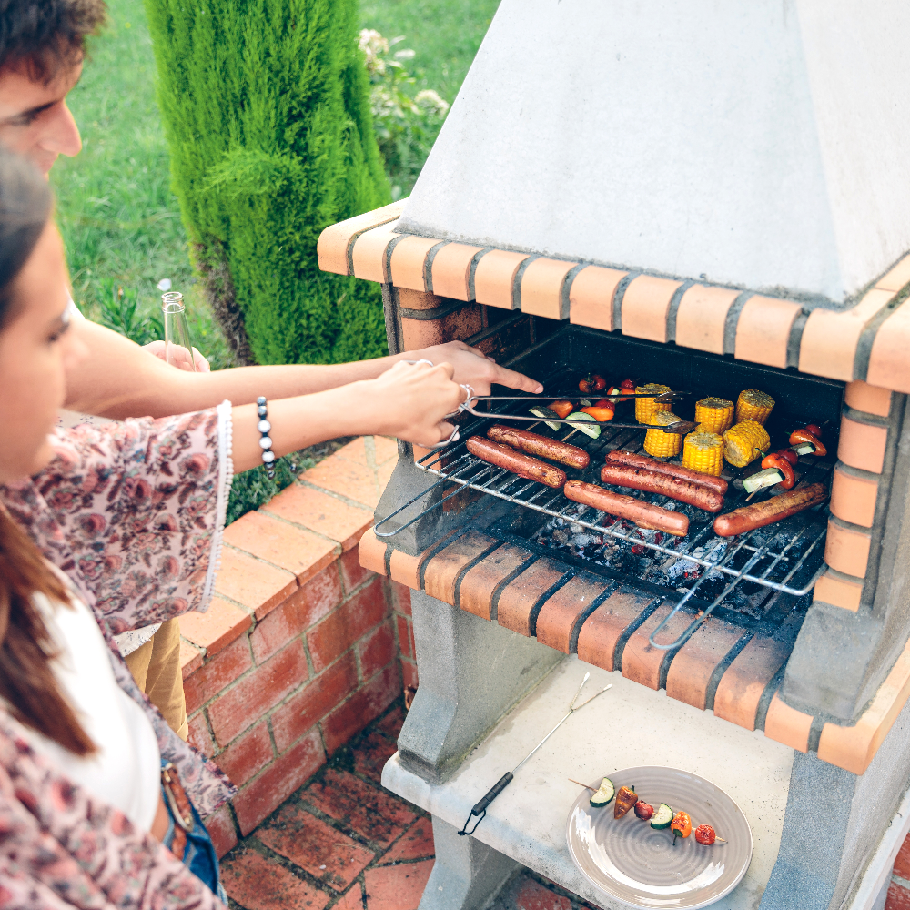 A DIY grill station from bricks offers durability and a timeless aesthetic.